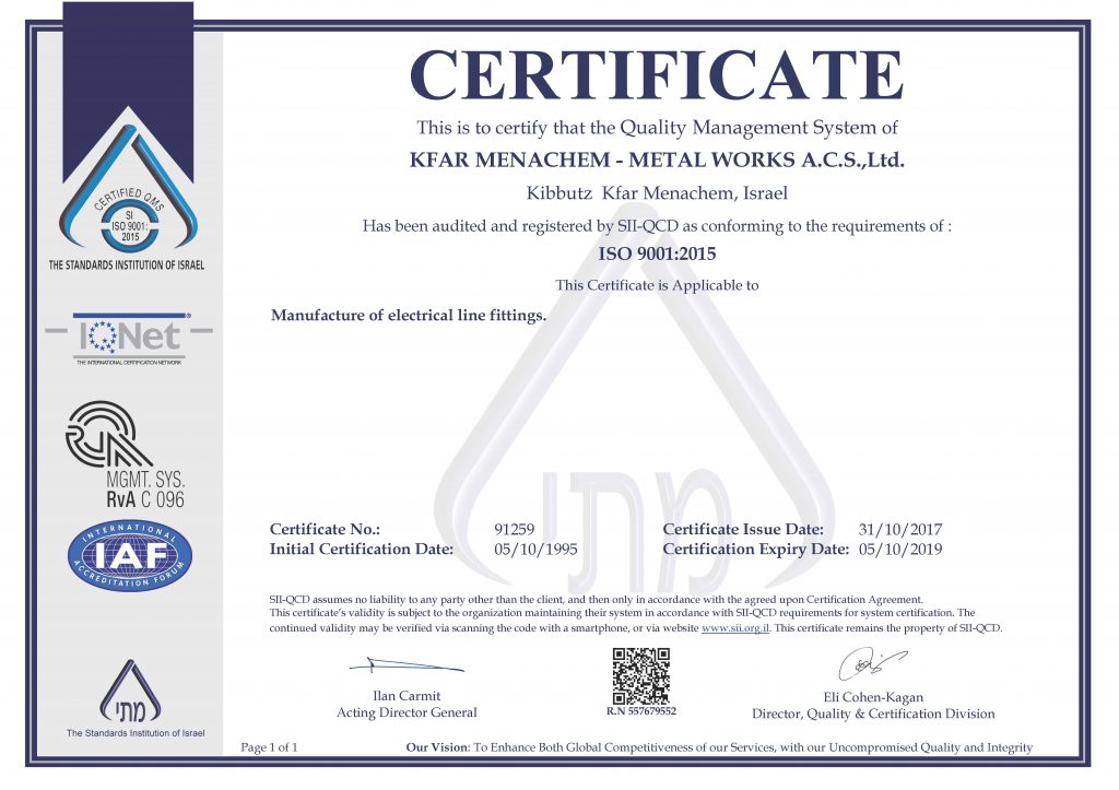 The Kfar Menachem Metal Works (KMMW) plant understands that quality and reliability are paramount in the industry in which it operates. As a result, even before the plant was certified in the ISO-9001 standard in 1995, as well as now, KMMW always strives not only to uphold the standards of quality, but to exceed them.